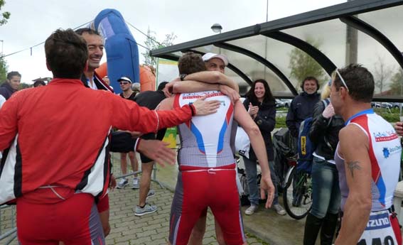 Mi porterò dietro l’immagine della gioia provata dal mental trainer Maurizio Biancotti quando ha superato per la prima volta nella sua carriera la finish line di una gara di triathlon e il meritato abbraccio de vicepresidente Ironmiguel ormai un faro insostituibile per il nostro guru Maurizio…. |